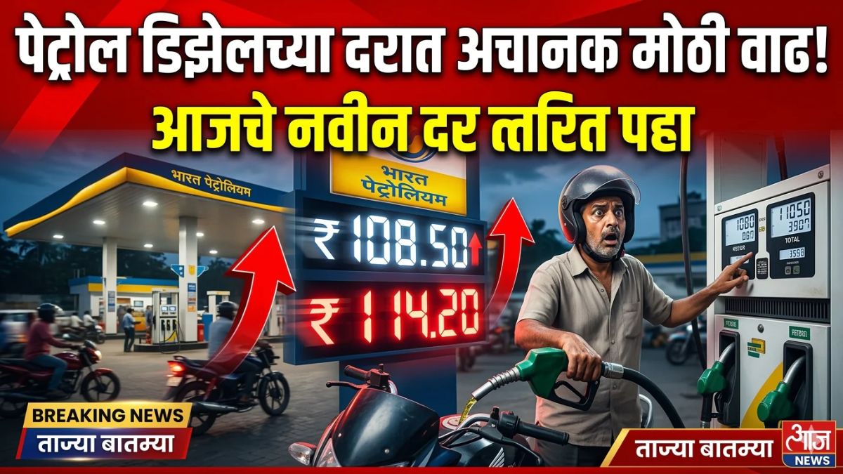 पेट्रोल-डिझेल-CNG चे आजचे ‘धक्कादायक’ दर जाहीर | Rates Petrol DieselShreya—March 23, 2026आनंदाची बातमी सोने 40 हजार रुपयांनी स्वस्त 1 लाख रुपयांवर येणार किंमत | Gold PricesShreya—March 23, 2026नमो शेतकरी योजनेचे ₹4,000 हजार बँक खात्यात जमा, चेक करा खाते । Namo Shetkari SchemeShreya—March 22, 2026आता या महिलांना मिळणार मोफत गॅस सिलेंडर, सरकारची अचानक मोठी घोषणा । Free Gas CylinderShreya—March 22, 2026